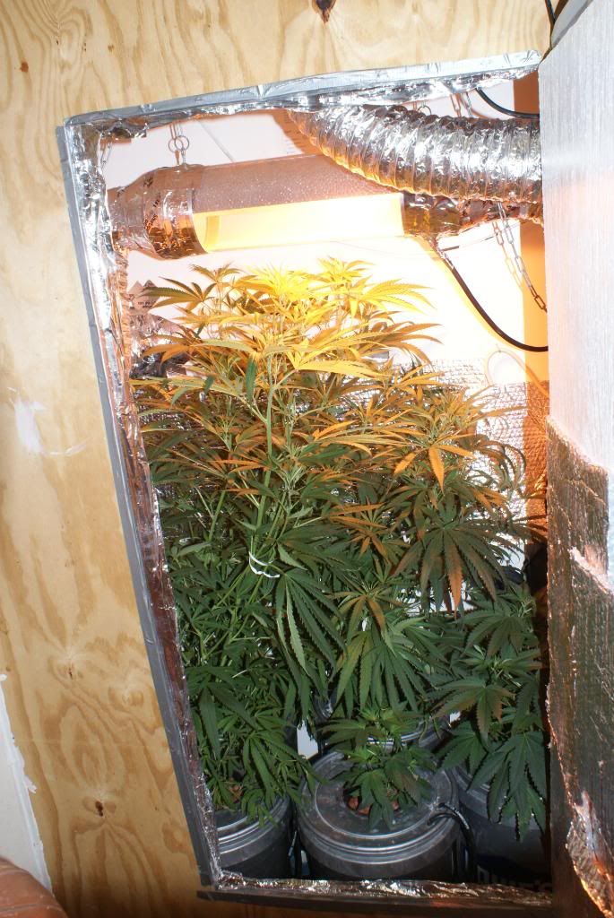 Enjoy the pics, Iâ??ll definitely take some nice ones once some buds really start to appear. Itâ??s hard to capture the scope of how large these things have grown. I didnâ??t intend to grow any Christmas trees but itâ??s turning out that way. I would have been ecstatic to get a single ounce out of this grow, but if things continue as they have, I may be lucky to get a little more than that OHâ?¦and my carbon filter works like a dream. My cab sits in a separated, individual room, almost like a detached guest room. It does slightly smell once you enter that room, but not outside. And standing right outside the vent exhaust with my nose right up to it, I canâ??t smell a thing. If anyone cares, I bought mine from Foothill filters on ebay.