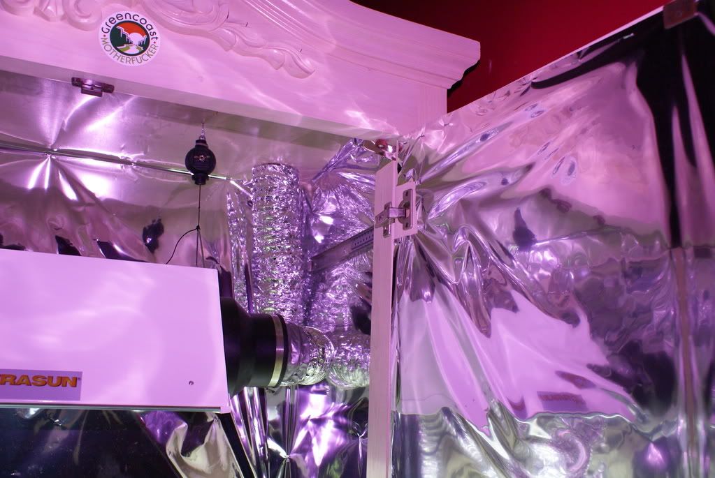 Also over the weekend, well on Sunday since I work 6 days a week, I was able to do some work on the cabinet. I took out the old flimsy back piece of wood and replaced it with some 3/4 plywood. Picture 3 and 4 below show the 2 holes that I cut in the floor and ceiling of the cab for the hood ducting. I still have to add venting for the actual inside cabinet itself but I am coming up with on idea that I can cool and also recirculate the air. The last picture is the top of the cabinet where I the the ballast and inline fan. The mylar was so much of a problem putting up but it helps tremendously.