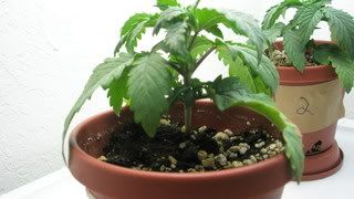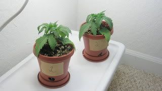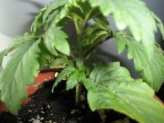 There is alittle yellowing around the bottom leafs. Also alittle droping of the leafs. The run off was low around 5.0 so I tried to flush them. I couldn't get it the run off over 6.3 or so. I am going to go to the Hydro shop tomorrow and get a good soil to replant them in 1gal pots. I am also planning to start nutes soon. I have only added 1 drop of ST so far.