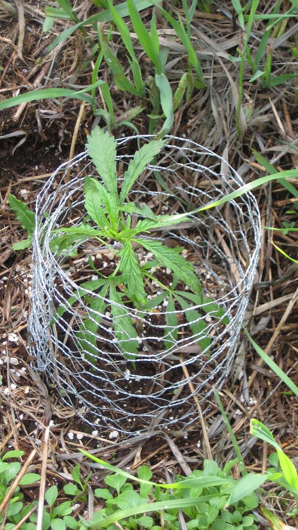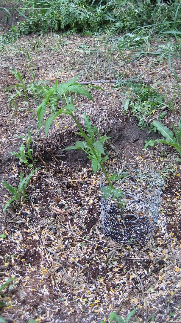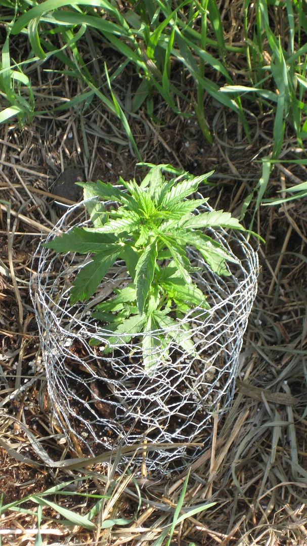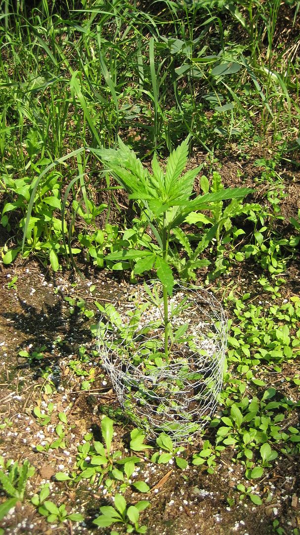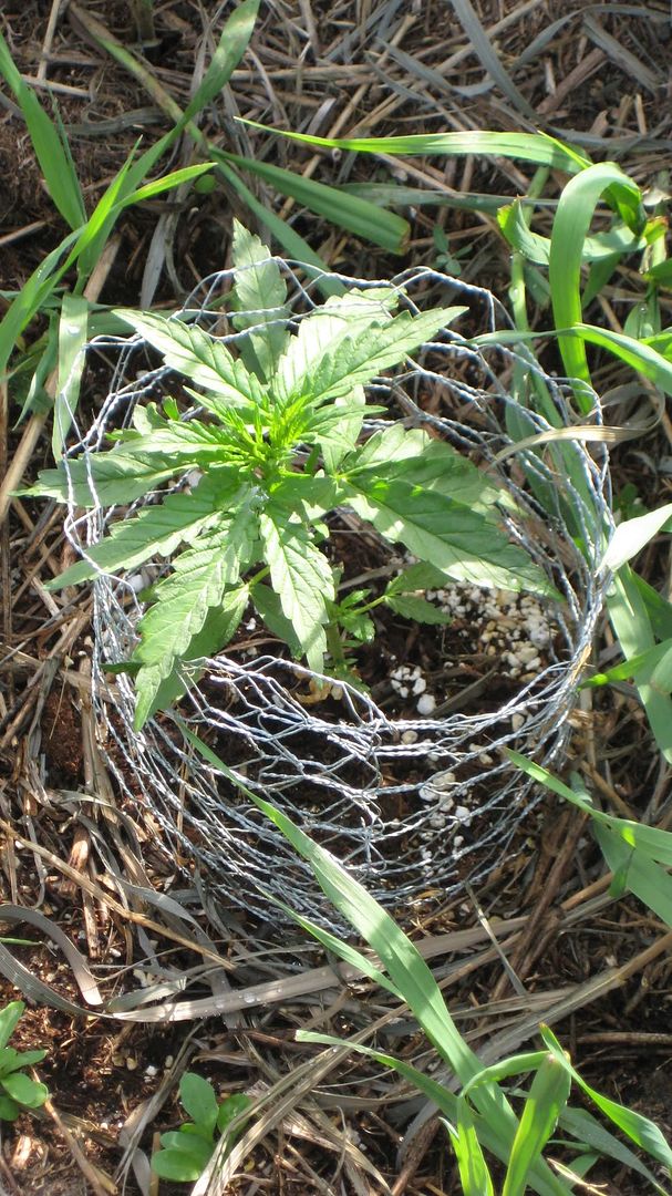 Well heres another update. Everything seems to be going alright, other than some minimal leaf damage from weed whipping the near grass on a few plants. Now there is 3 over a foot tall (the height of the mesh is about a foot) and the rest are looking like they are gonna get nice and big. Heres hoping that they are ladies.