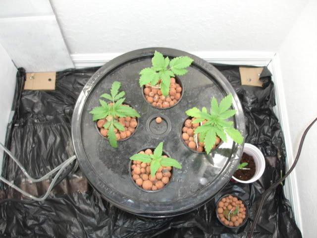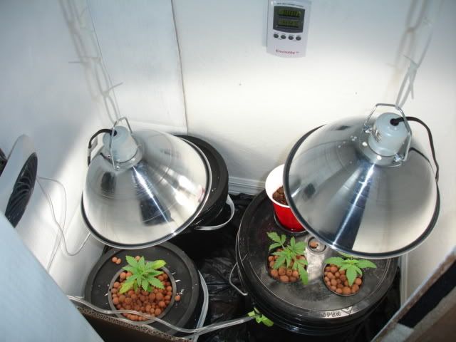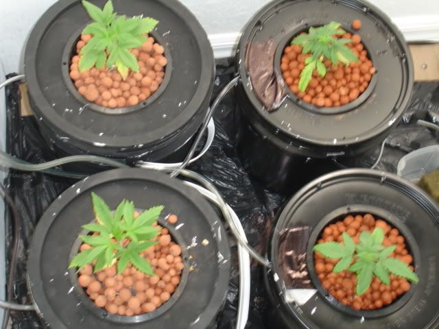 So here are some pictures. The 2 biggest ones in their own buckets are 19 days old from seed..and the one thats still in the multiple system thats short and has wide fan leaves is also 19 days old but has been sick for the past few days. :( she looked awesome up until a few days ago..i woke up and she looked near death..very wilted and laying over..i watered and she came back to life but hasn't been the same since..bottom leaves are curled up....just not looking that great..a hydroton rock was kind of sitting on her stem when i first put her in the sytem but she refused to give up..i'm hoping she will pull through as i could tell she was a different type of strand/strain? sorry forget which it is..a lot shorter than the others and growing out rather than up..