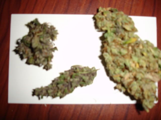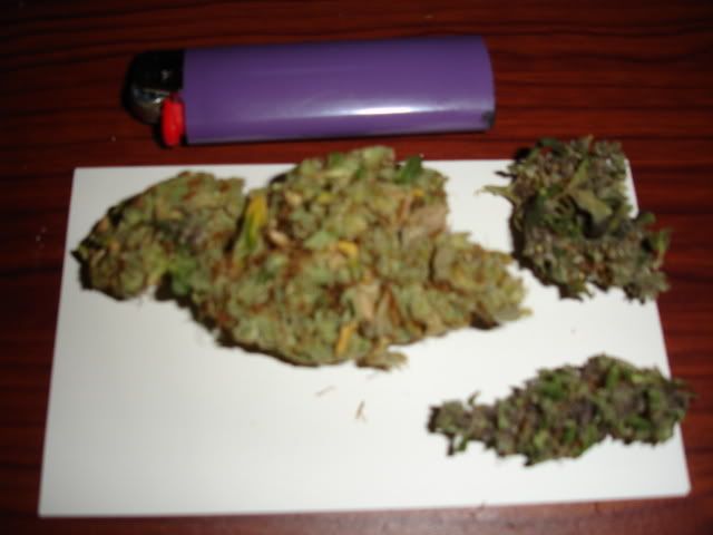 Pics don't do em justice..The big green bitch is supposed to be Jack herer and forgot the purples name....However it has little purple bulbs all over it..almost looks like purple seeds at first glance..smoke is amazing..smell, taste, etc. Same for Jack..!!!