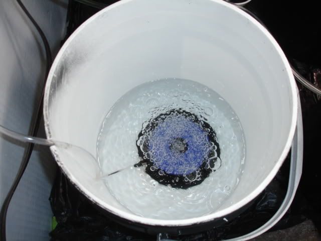 The roots exploded just in the last day or so...But only the two plants that i put in their own buckets..I'm using 2 gal buckets now..the roots are so damn long that they are touching the bottom of the buckets..Is this bad? As you can see in the pic below ive lowered the water level drastically so as little of the roots as possible are sitting in the water...Is this a big deal? SHould i go to bigger buckets? That would really suck...