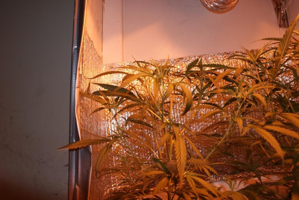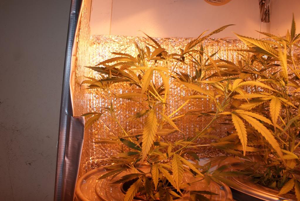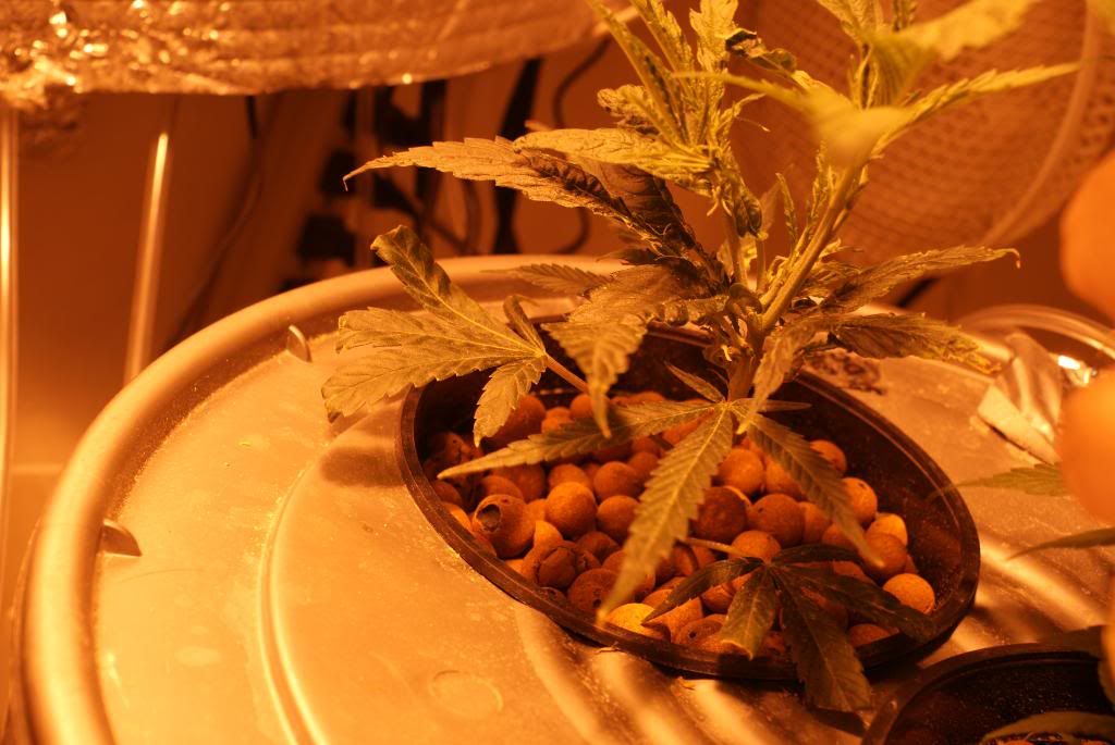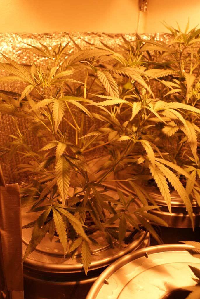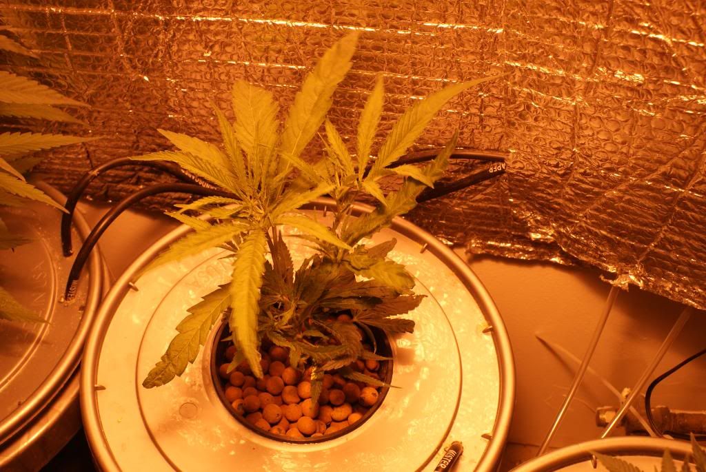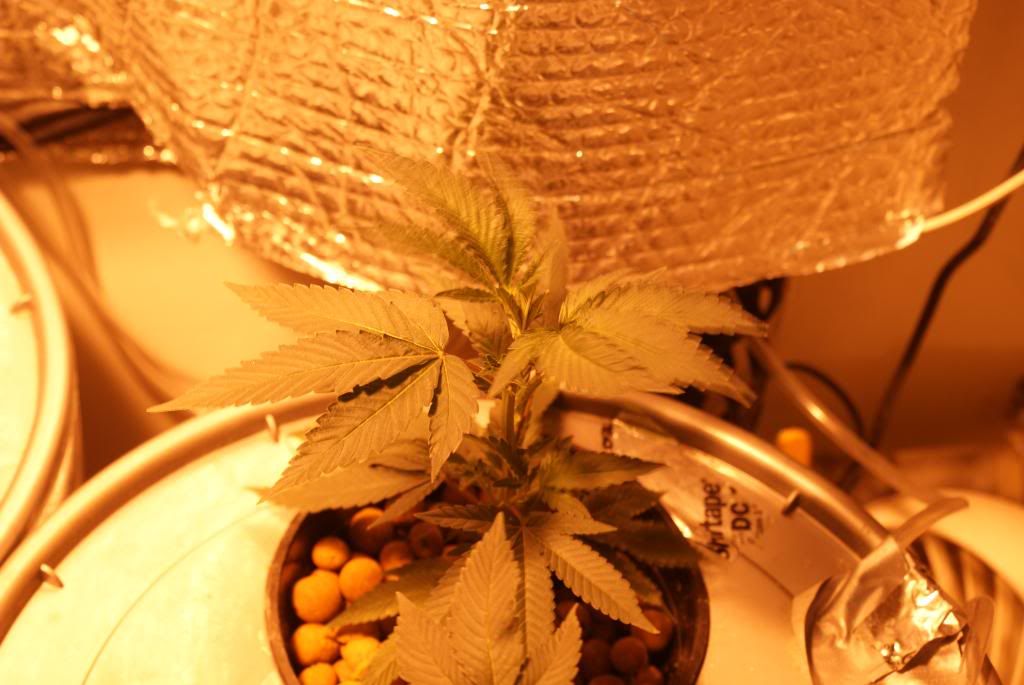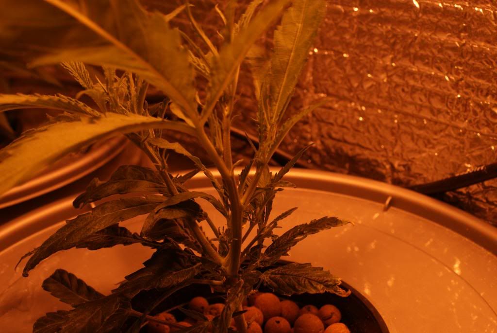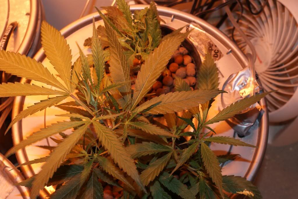 Temperatures were in the mid to high 90??s today, which is cooler than it has been but still wicked hot. It??s dipping into the mid 80??s over the next few days so I??m keeping my fingers crossed. I bought a fan and pointed it at my ballast, but the light went off again while I was working in the grow room, and this time I know I didn??t touch the light or cool tube. It could be the heat, the bulb, faulty wiring?who knows. The ballast itself never shuts off, but the light suddenly turns itself off, glowing orange and slowly fading. Then, the bulb slowly begins to turn yellow, all the way lengthwise, until it finally flashes on and grows brighter over a slow period. Very strange. The plants so no obvious signs of stress, but I??m going to have to keep an eye on this.