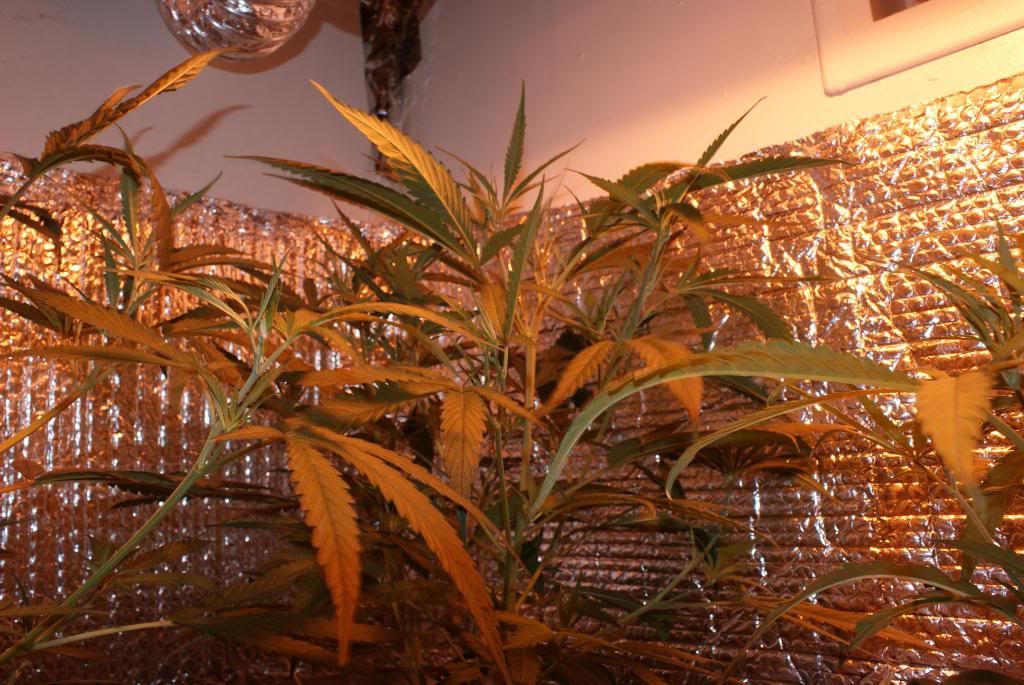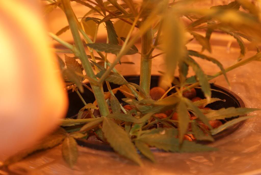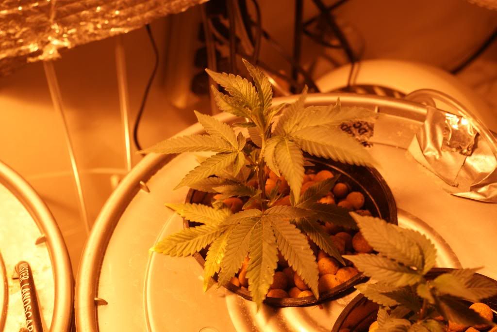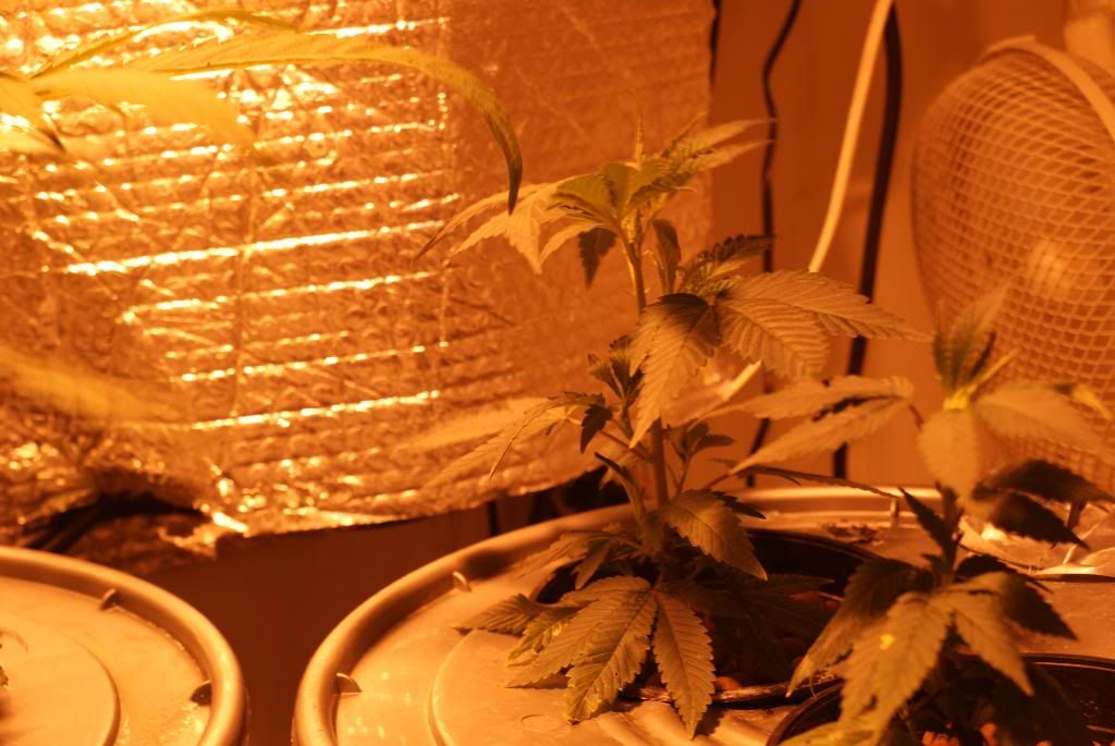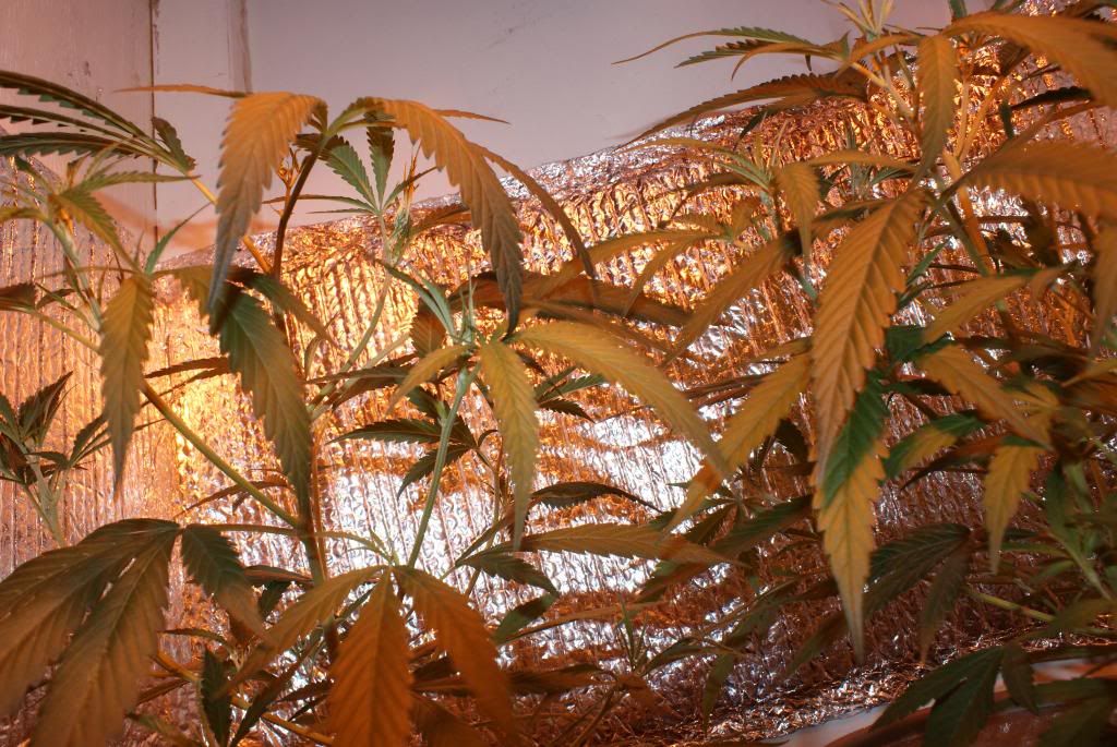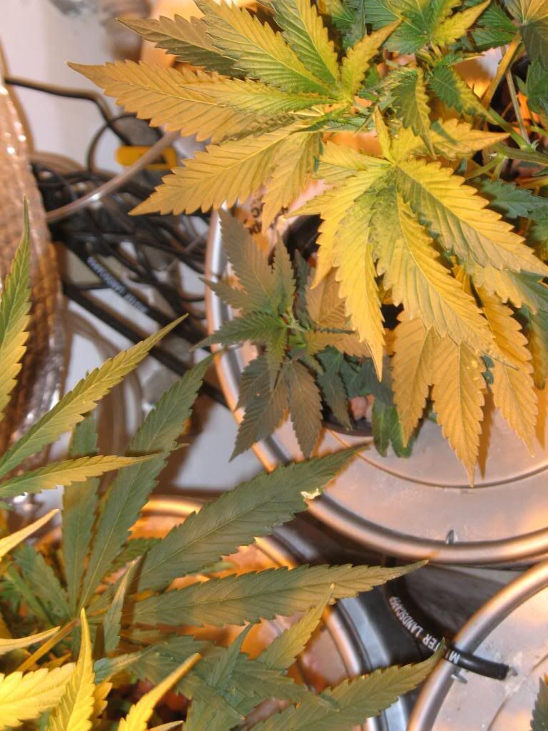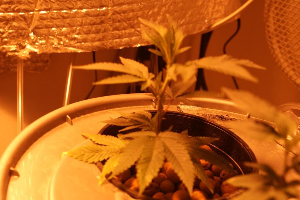 Temperatures were in the mid to high 90??s today, which is cooler than it has been but still wicked hot. It??s dipping into the mid 80??s over the next few days so I??m keeping my fingers crossed. I bought a fan and pointed it at my ballast, but the light went off again while I was working in the grow room, and this time I know I didn??t touch the light or cool tube. It could be the heat, the bulb, faulty wiring?who knows. The ballast itself never shuts off, but the light suddenly turns itself off, glowing orange and slowly fading. Then, the bulb slowly begins to turn yellow, all the way lengthwise, until it finally flashes on and grows brighter over a slow period. Very strange. The plants so no obvious signs of stress, but I??m going to have to keep an eye on this.