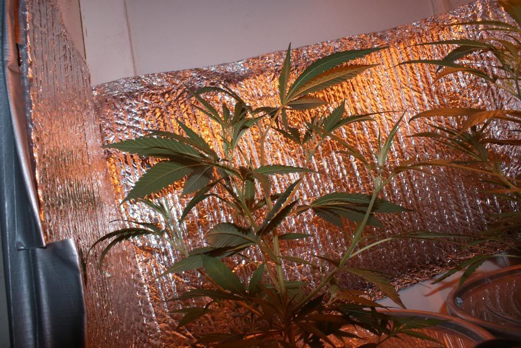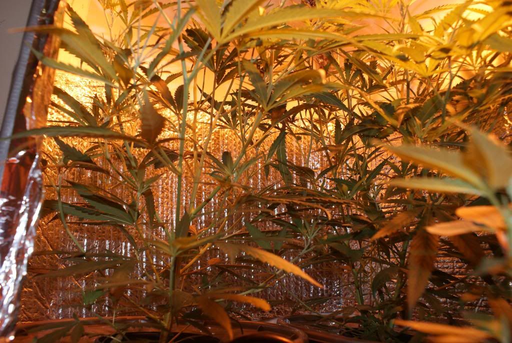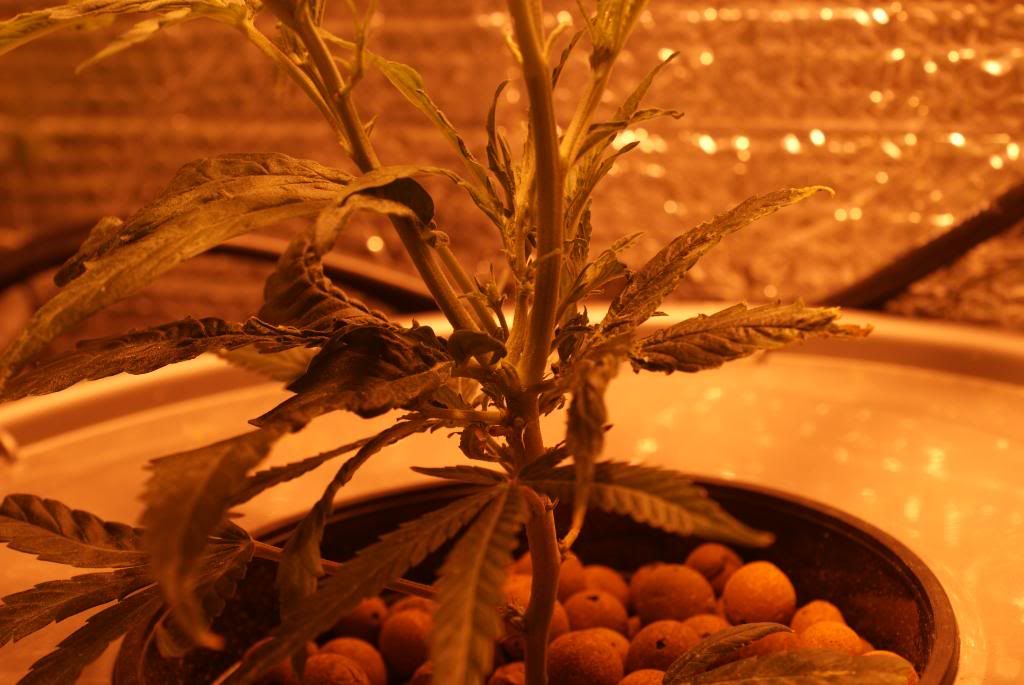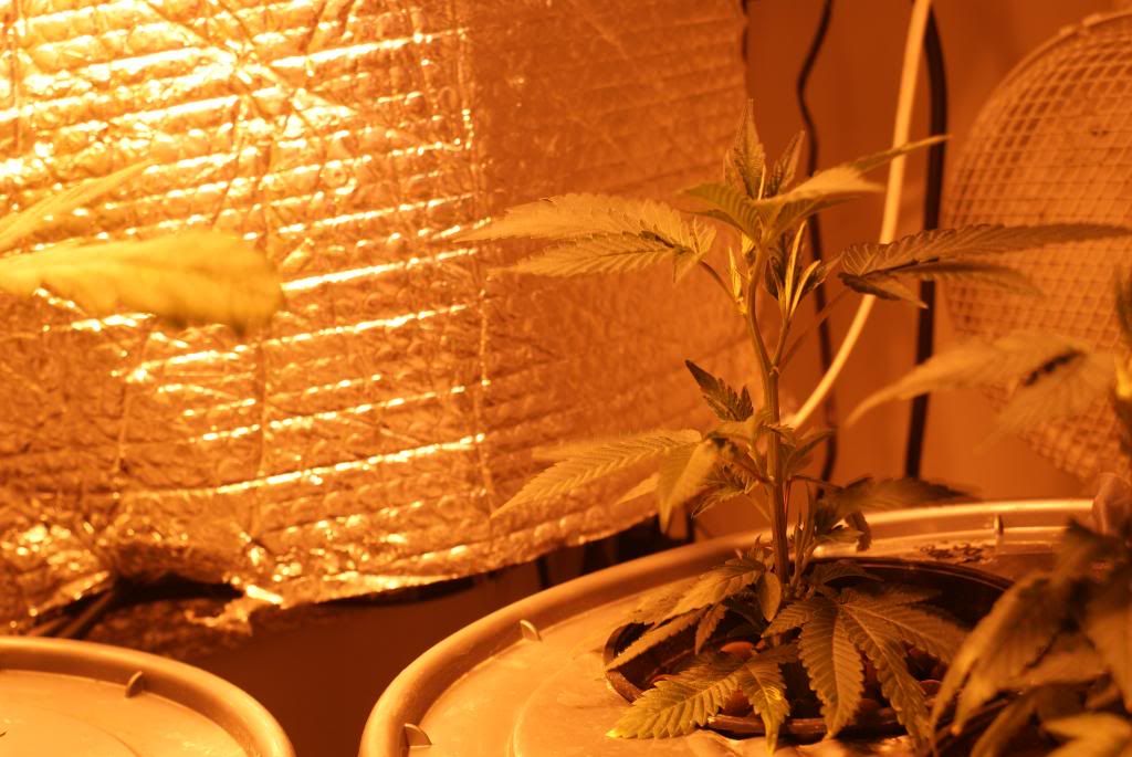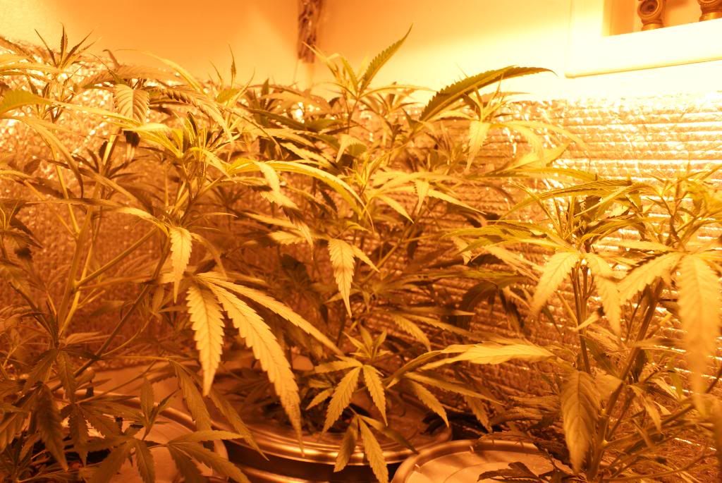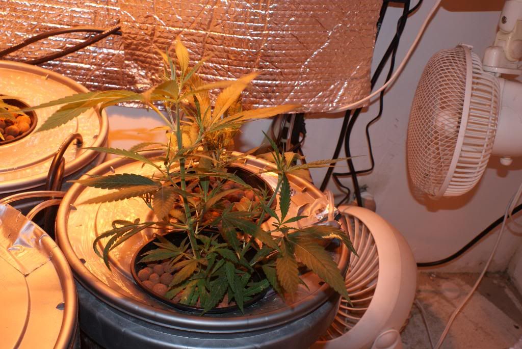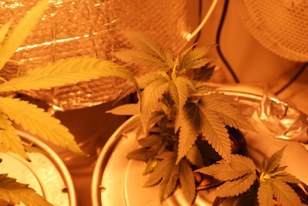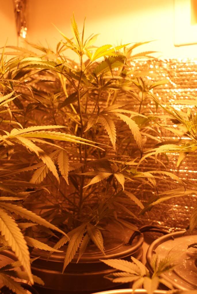 Temperatures were in the mid to high 90??s today, which is cooler than it has been but still wicked hot. It??s dipping into the mid 80??s over the next few days so I??m keeping my fingers crossed. I bought a fan and pointed it at my ballast, but the light went off again while I was working in the grow room, and this time I know I didn??t touch the light or cool tube. It could be the heat, the bulb, faulty wiring?who knows. The ballast itself never shuts off, but the light suddenly turns itself off, glowing orange and slowly fading. Then, the bulb slowly begins to turn yellow, all the way lengthwise, until it finally flashes on and grows brighter over a slow period. Very strange. The plants so no obvious signs of stress, but I??m going to have to keep an eye on this.