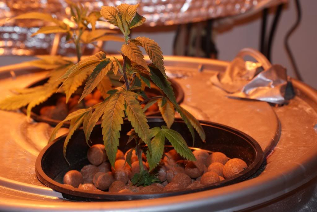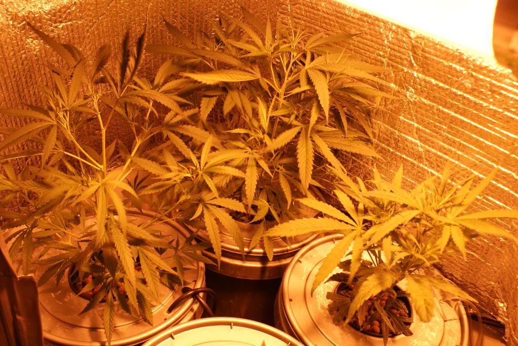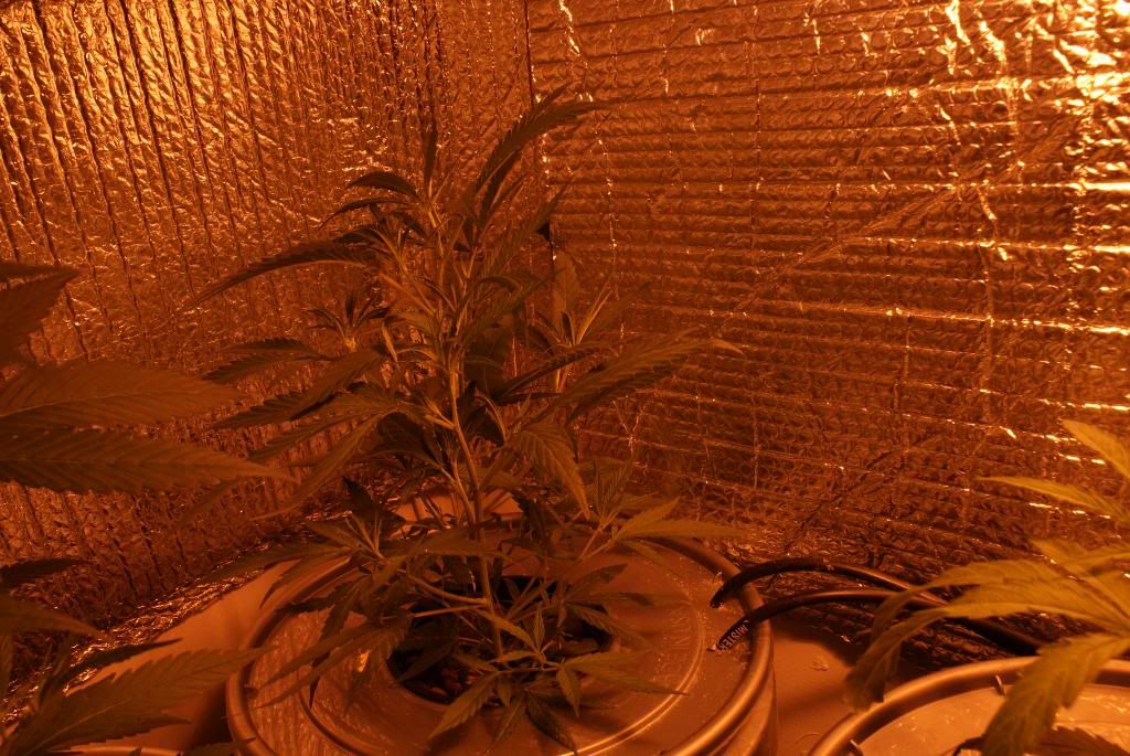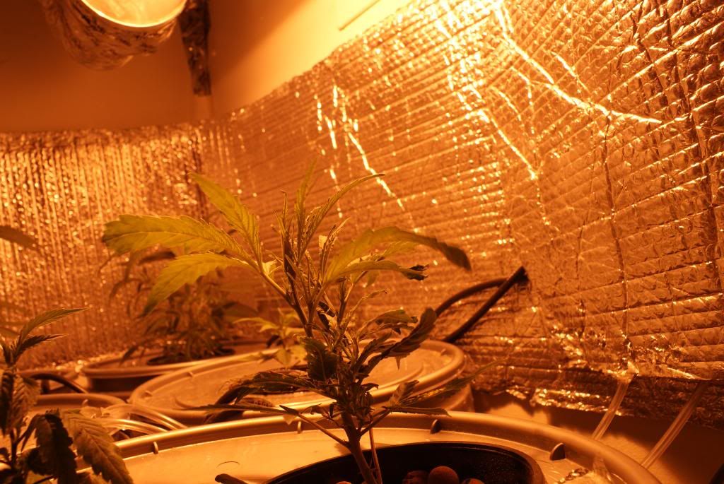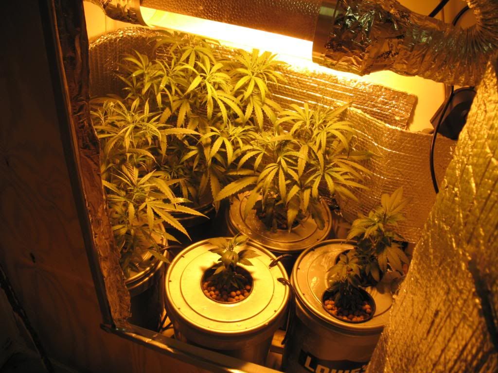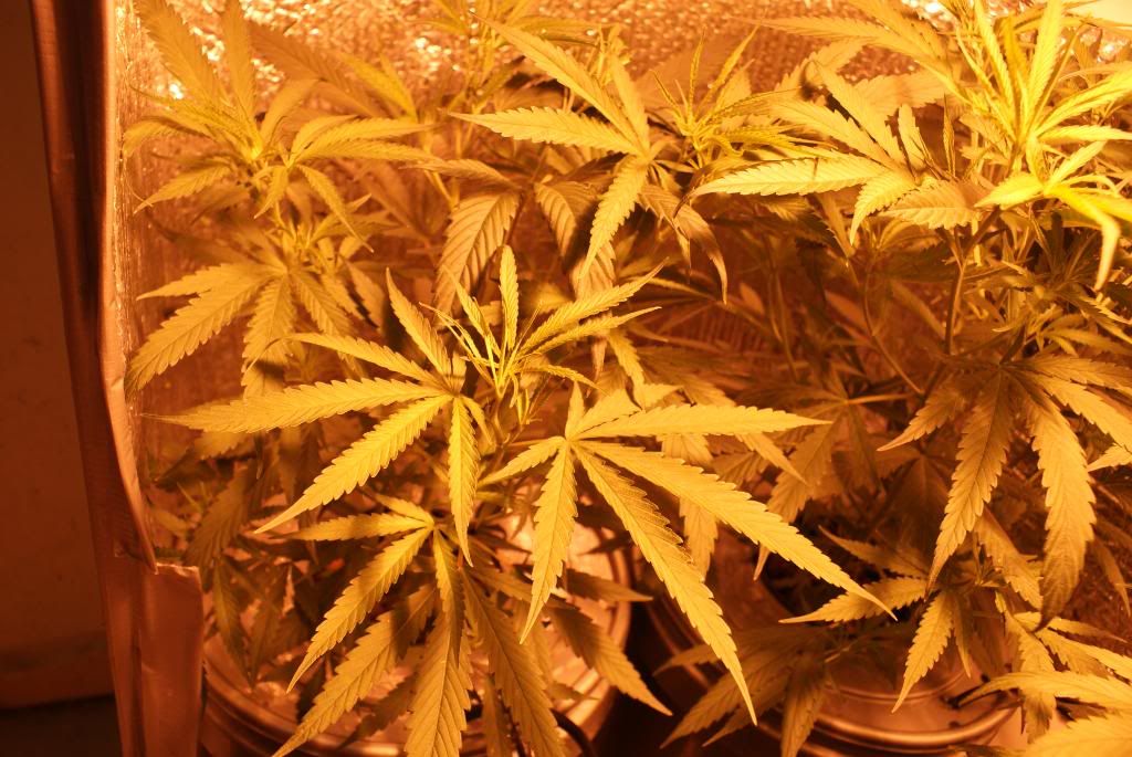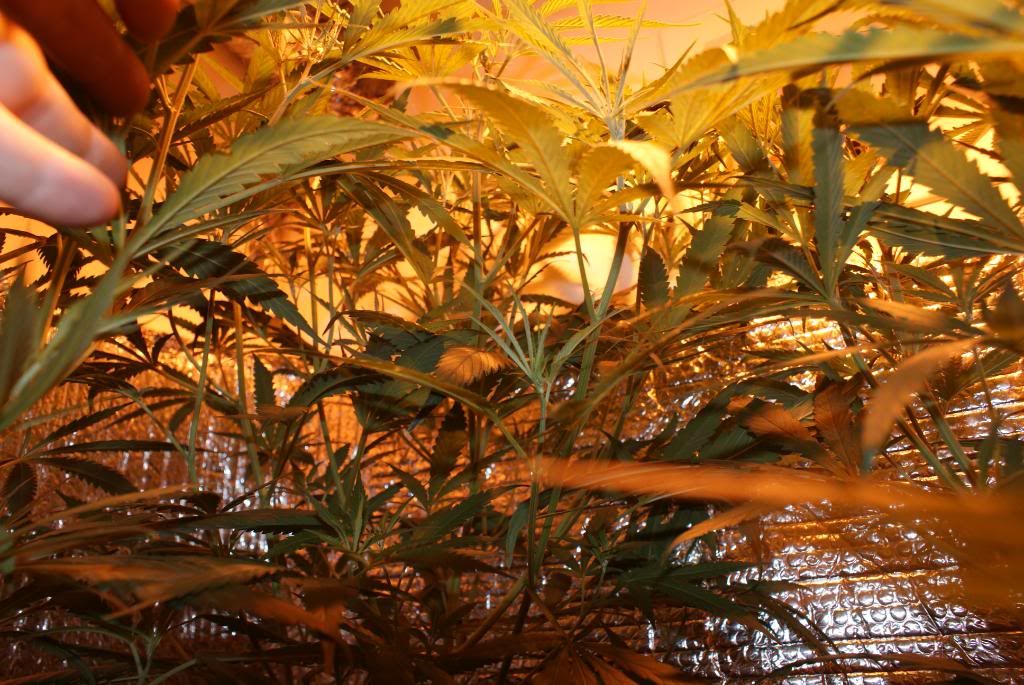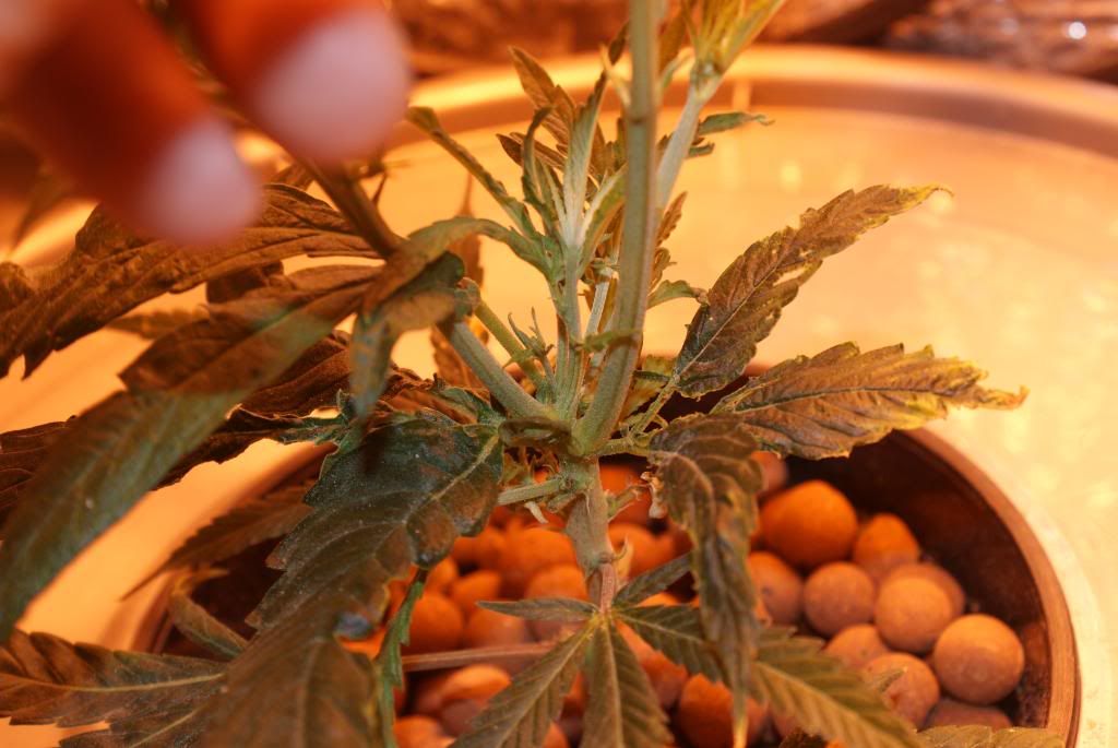 Temperatures were in the mid to high 90??s today, which is cooler than it has been but still wicked hot. It??s dipping into the mid 80??s over the next few days so I??m keeping my fingers crossed. I bought a fan and pointed it at my ballast, but the light went off again while I was working in the grow room, and this time I know I didn??t touch the light or cool tube. It could be the heat, the bulb, faulty wiring?who knows. The ballast itself never shuts off, but the light suddenly turns itself off, glowing orange and slowly fading. Then, the bulb slowly begins to turn yellow, all the way lengthwise, until it finally flashes on and grows brighter over a slow period. Very strange. The plants so no obvious signs of stress, but I??m going to have to keep an eye on this.