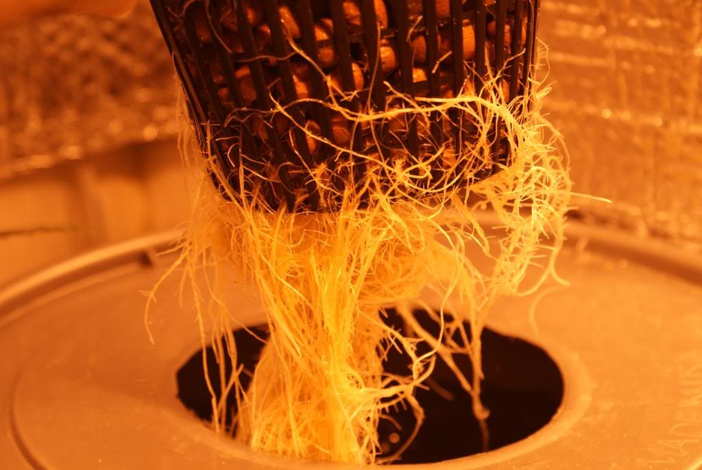 While we worked to change out the reservoirs, I was able to take some pics of the root structure so far: