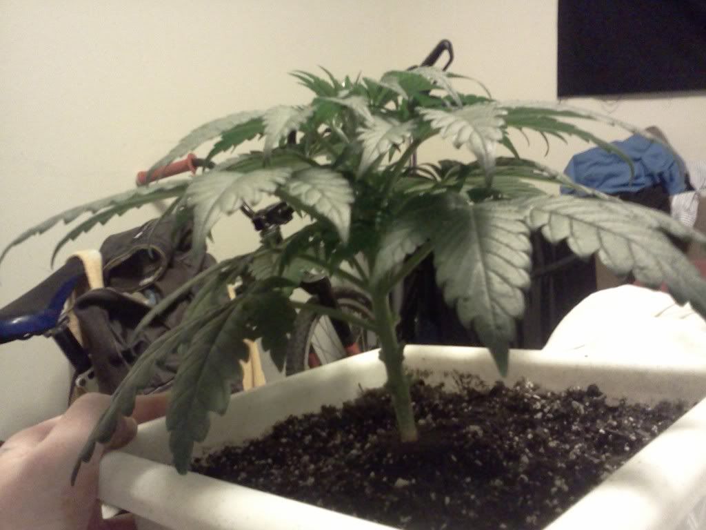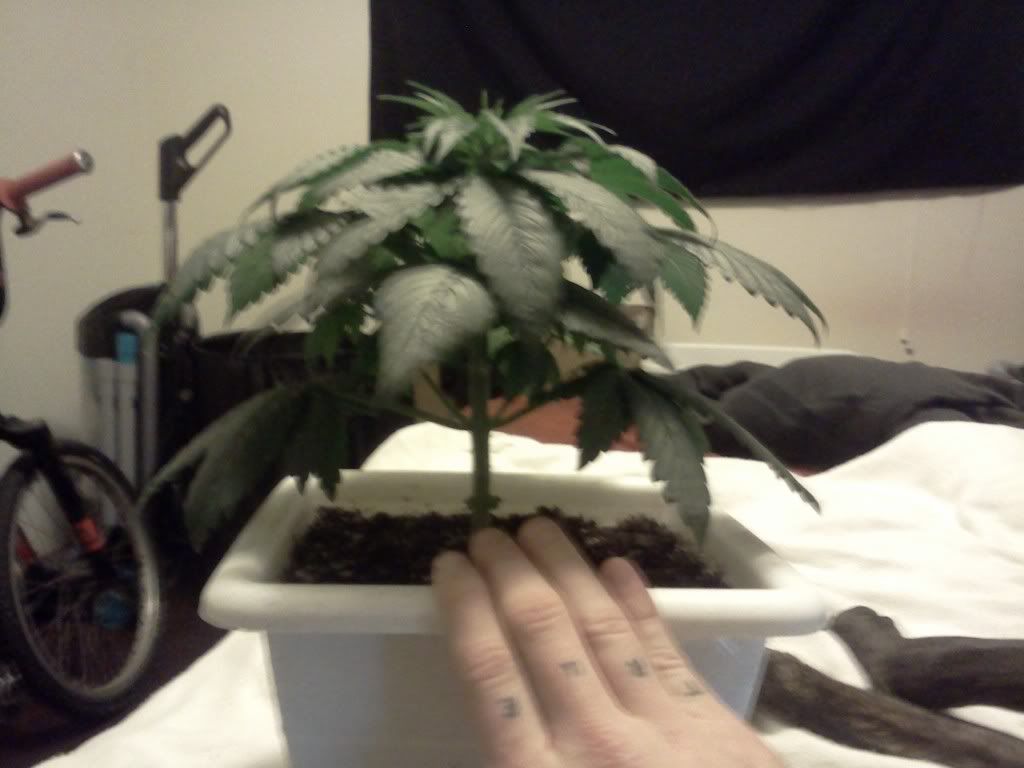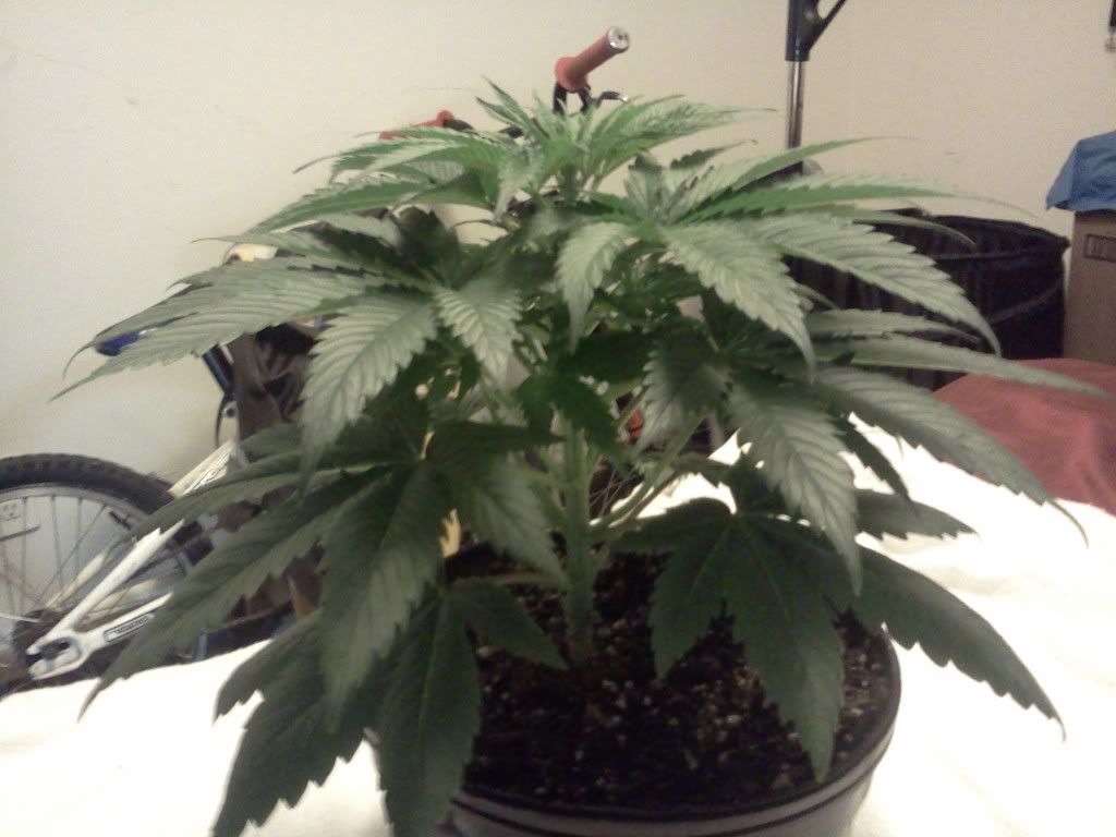 Narrowed it down to what I think are the 10 best plants. All growing fast, a few more days and they should start getting the message to start bud production. Gave a nice guano tea + some Humboldt bloom. Definitely gotta add a little K to the next feeding. Smell is out of control on 2 of the more indica plants. The 4 in the 6" pots have developed a smell similar to vicks vapor rub. And the other 5 barley smell yet, but a nice pine / turpentine smell when you rub a stem. Now, I must say the t5 is doing very well. Runs about 72°f-79°f so not bad. Pics coming Friday