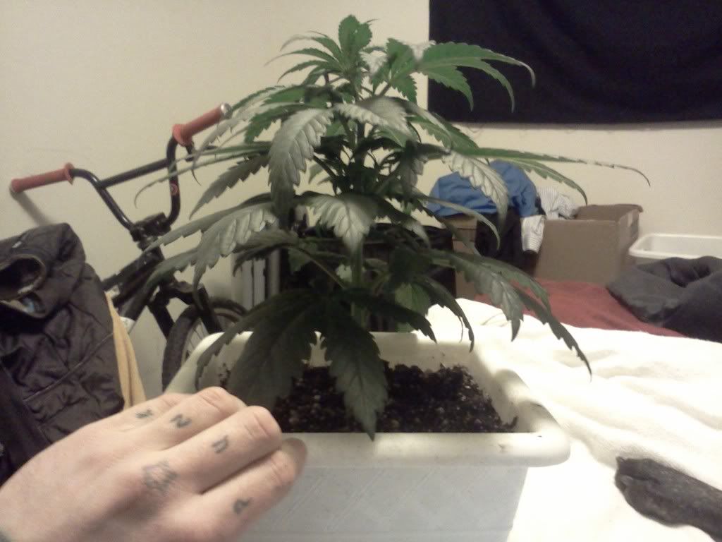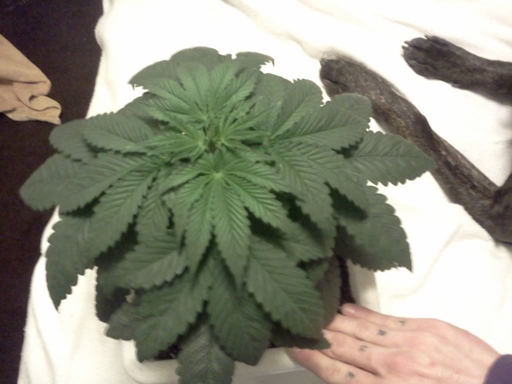 Thanks a bunch :) I do have to say, for this being my 4th indoor grow, I'm getting the hang of it. And the bull-dozer has got to be right by my side at all times, unless the plants come out. Then he trying to sneak up and tug on a leaf, wich is why some of the lower leaves have little rips. If I pull of dying leafs or little branches I give them to him as a treat. He throws them around for a little bit before trying o swallow them whole. LOL. But on to the plants again.....these little girls can take the nutes man. Normally I run Humboldt bloom at 2ml a gallon for the first couple feedings and get a slight burn. Since these are a little more on the indica side I decided....why not push it to 6ml a gallon....and they are taking it fine as you can see. So ill give a slight flush once a week and just keep pushing them. Till next week, keep growing, and stay safe...... the world gets more fucked up everyday lately. =]