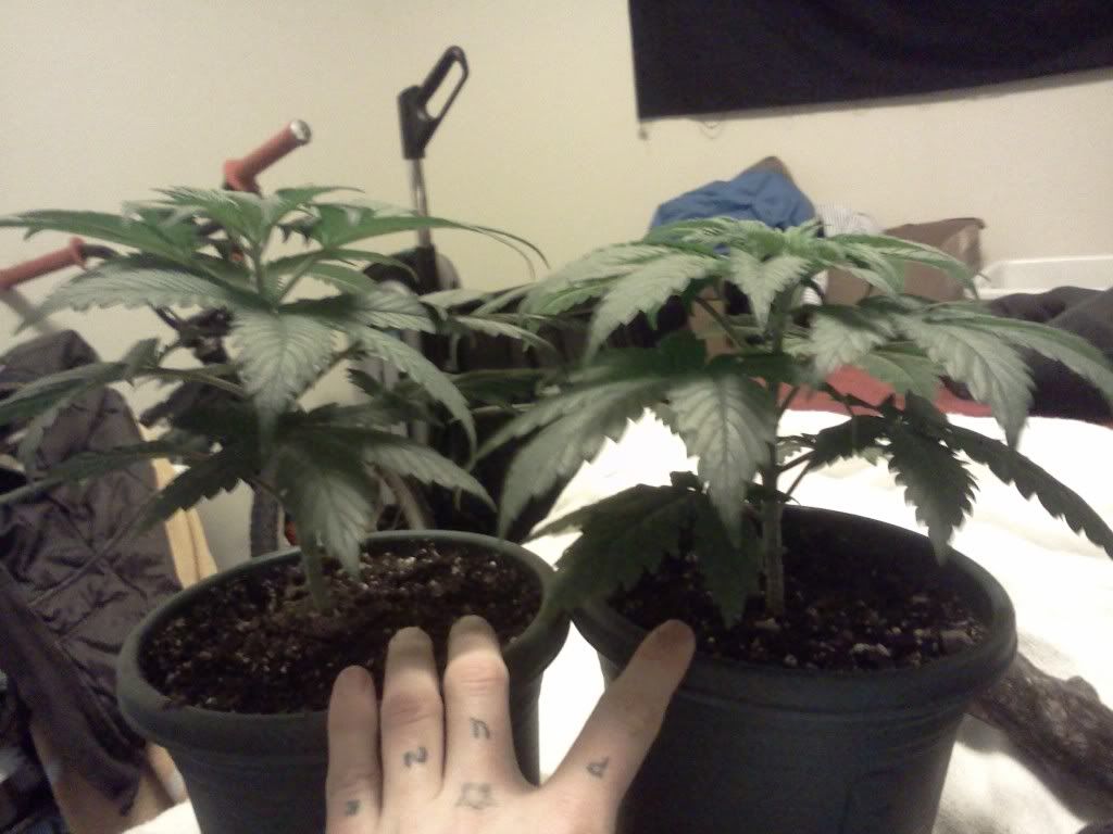 So far so good. I don't see anything going wrong. Looking healthy, nice and green. And before anybody say anything bout the two in one pot..... I swear I only planted one seed,might have been high and dropped two, but I figured one or both would be male....nope both female. So they must be twins LOL