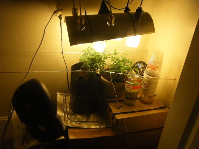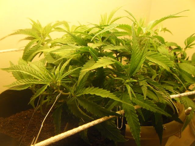 UPDATE!!! so i modifyed my grow room a little bit. I added to ropes for one end of the wall to the other to help LOW STRESS TRAINING that im doing with my little girls! they seem to be taking well to it. Another day or 2 im going to pull both my Bag Seed and AURORA INDICA clones out of the home made domes. Seeing some root growth from the bottom of the rockwool cubes. But Here are the pics!
