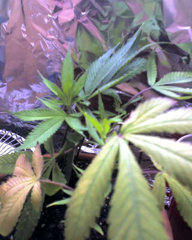 anyone out there??? i need some help with my grow.... also my clones old lower leaves are turning yellow then a light tint of purple on the edges then turning almost a white purple color... is this a magnesium deficiencey?