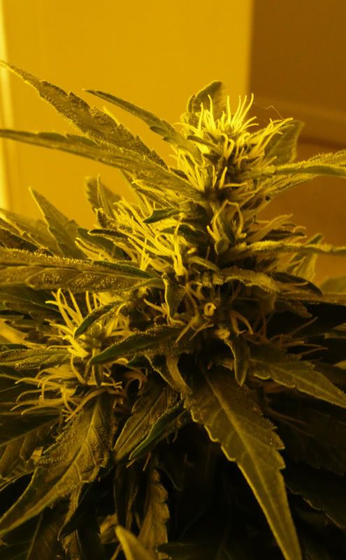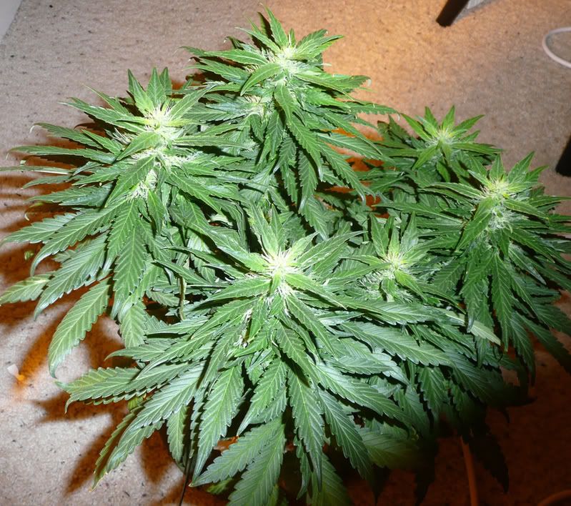 kindof... when it was vegging a cfl fell on it and burned the top it has 8 main colas right now but should have 10 because about a month ago i accidently broke one of the big main colas off trying to lst it so light could get to the 2 smaller colas behind it but the stem snapped inhalf i guess that took care of the light problem also harvest one of the smaller colas like 4 days ago lol i was out of pot
