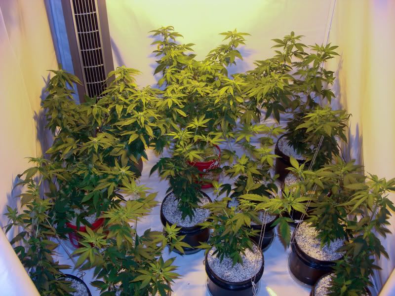 Loookin' hella great killa. :greenthumb: I'm curious to how you water...through the top of the containers and let it run through? Do you get rid of the runoff or let the plants soak it up? Also, how much water vs. the size of the hempy container? I'm using soil for now, but I'm leaning towards cutting my females up and putting all their clones in 1 liter perlite/vermi bottles and doing a sog. :jointsmile: