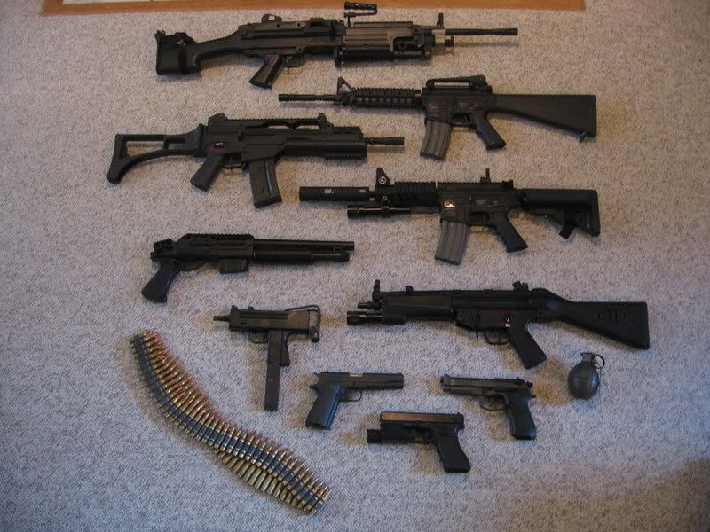 very nice bro I realy like that saw..........Your prices are alot cheaper than what I can get em for. For example the saw you got I can get for about 700-900 at the cheapest, where did you get your hardware? Where do you play cause I know alot of people play in viginia. I think the guy that opend the CQB coars here is from their he has nice stories of how many able bodies their are to have scermishes. looks like you play all forms of combat from CQB too full outside courses, you ever been on a fire team? The I have the same M4 at least as far as I can tell, I have used the g36 too, That mac is gass right? does it kick on full auto? In a CQB area I bet the sound is very nice. I could have won that same we 1911, they givem em away for competitions here along with USP GBB. I was outta town on the day of comp. and the team we always beat won I know we would have won.