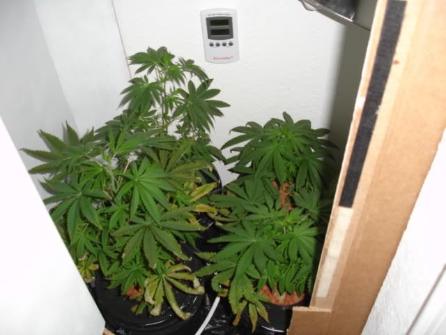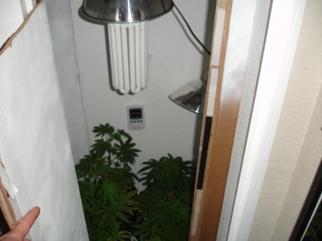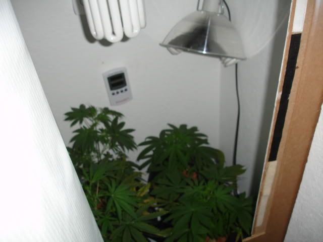 Got my light in...Just put it up like that temporarily..I plan on building my own horizontal light fixture/hood to save a few bucks..Its a 200 watt CFL..hopefully heat wont be an issue..we'll see...Changed the schedule to 12/12 tonight...