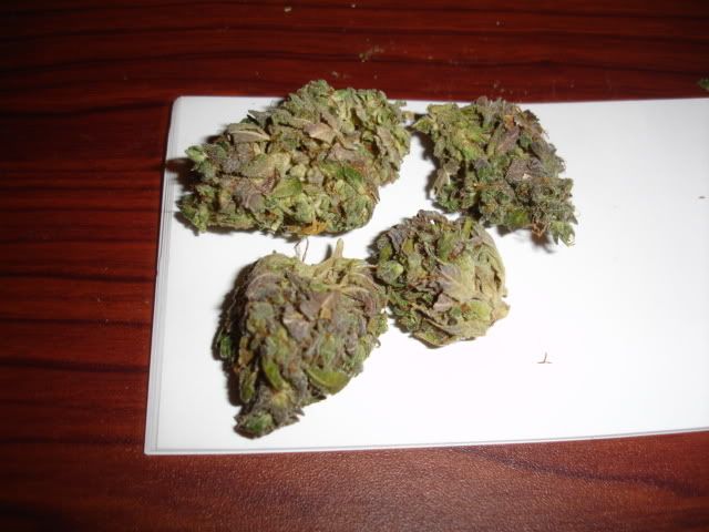 I'll get some pics of the indoor ladies soon..Heres some gorgeous stuff we picked up today..Pics don't do justice..from left to right - Killer Blueberry - Rat Race - Jack Herer