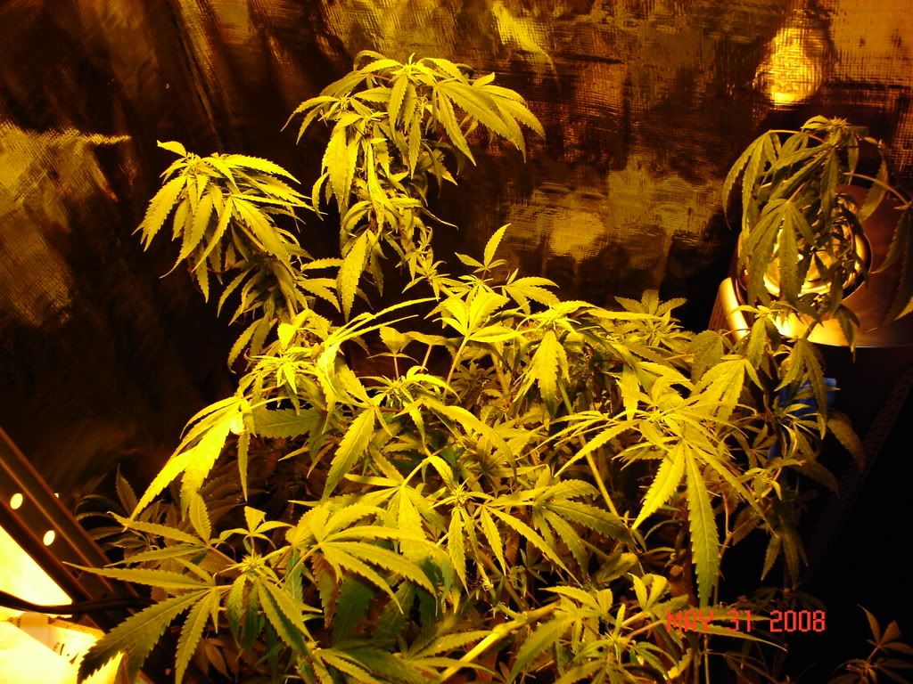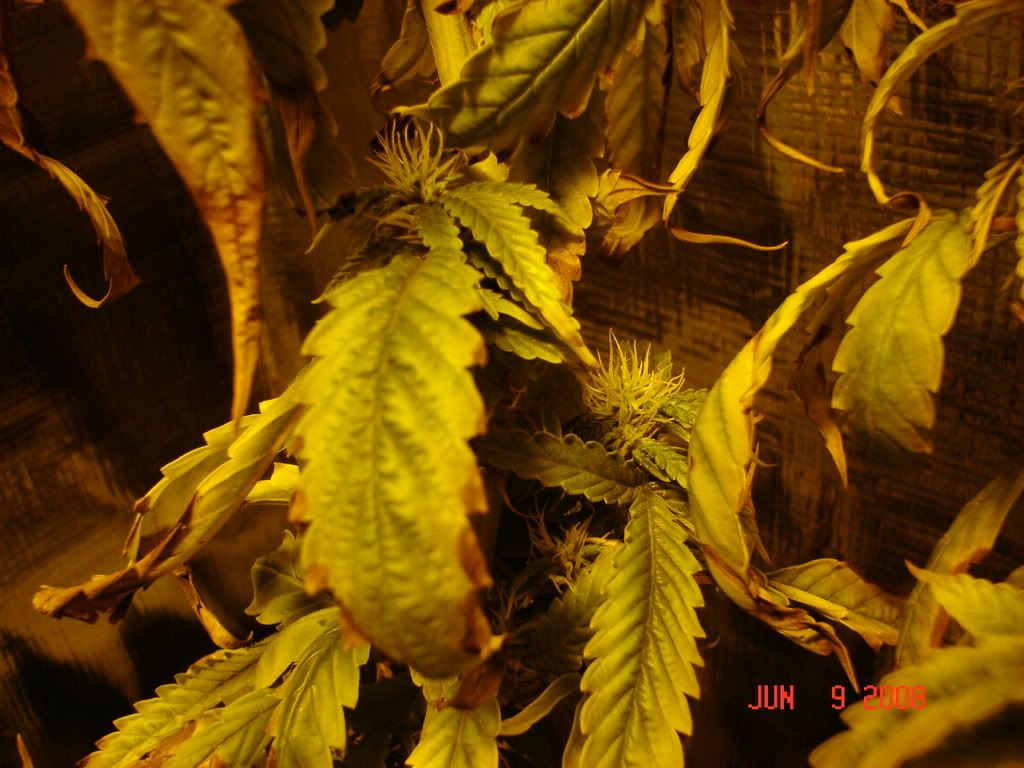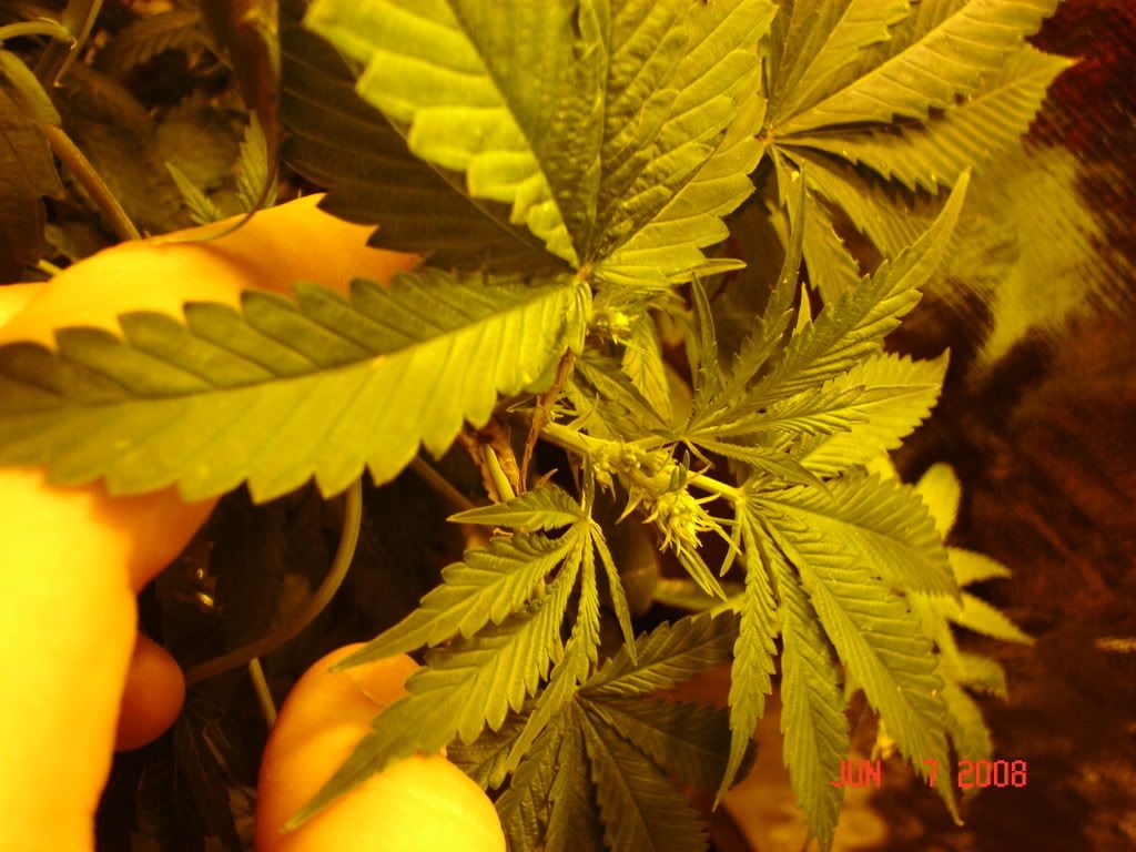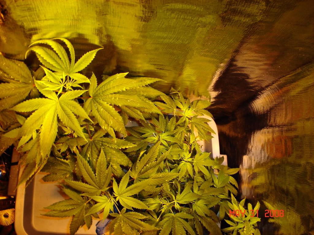Update -Still hot as hell, trying my best to keep light far enough away. I killed the male and put the last plant from veg under the hps. I have 3 new babies (bubblegum x S.A.G.E.) in the veg box, I'll get pics of them later.
