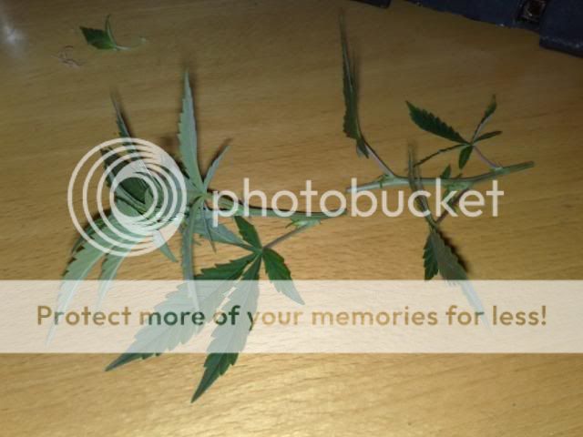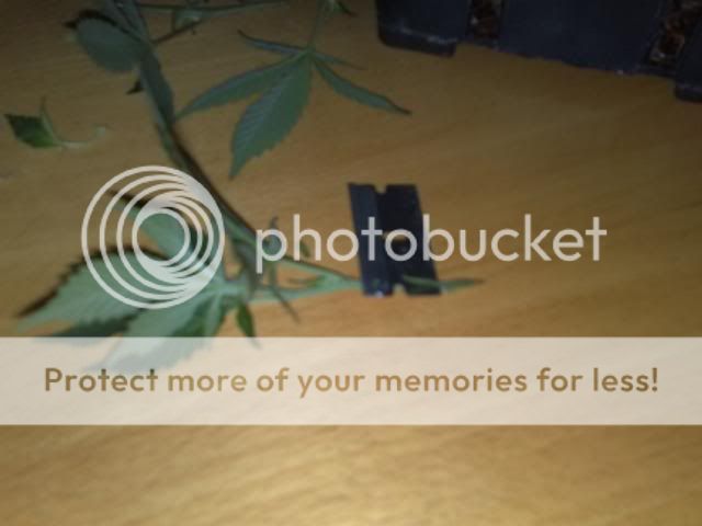 Clone gets cut into a better size, now with an angeled cut, I always keep minimum 2 spots from which the clone can start growth to be sure: