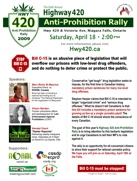 More info at the web site: Highway 420 Anti-Prohibition Rally, Saturday, April 18, 2009 - Niagara Falls, Ontario, Canada