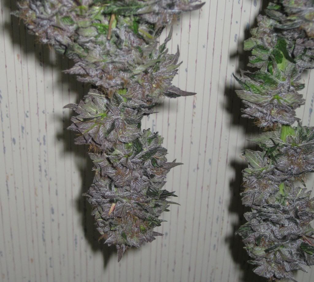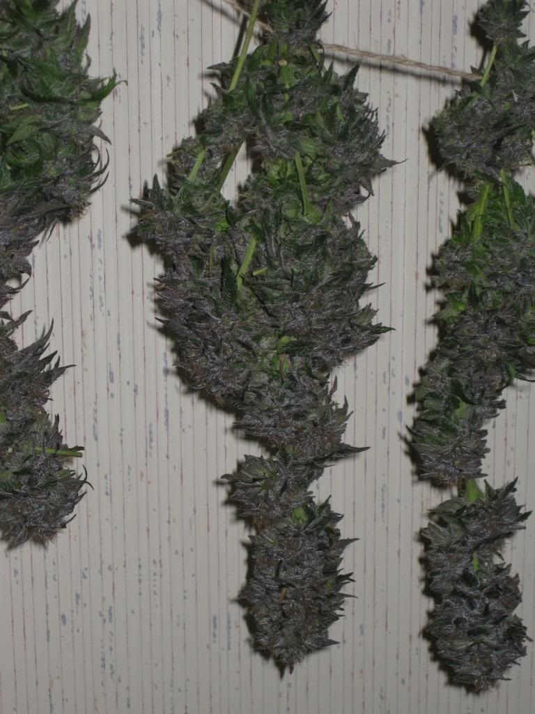 Thanks for the kind words everyone. Well Today the purple kush stems/branches were snapping clean. I smoked a few joints and this stuff and its Grade A+. The smoke taste like grapes, and delivers an amazing long cerebral/body high..Some of the best smoke i have ever had..The final Harvest for Purple Kush was 54 grams after 5 days of curing next to a fan on full blast...Chem Dawg And Burmese Harvest/Smoke Reports coming soon..:jointsmile: