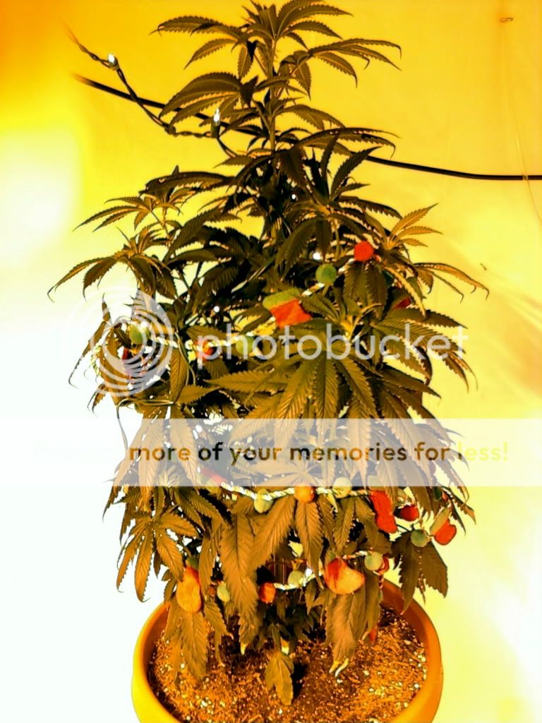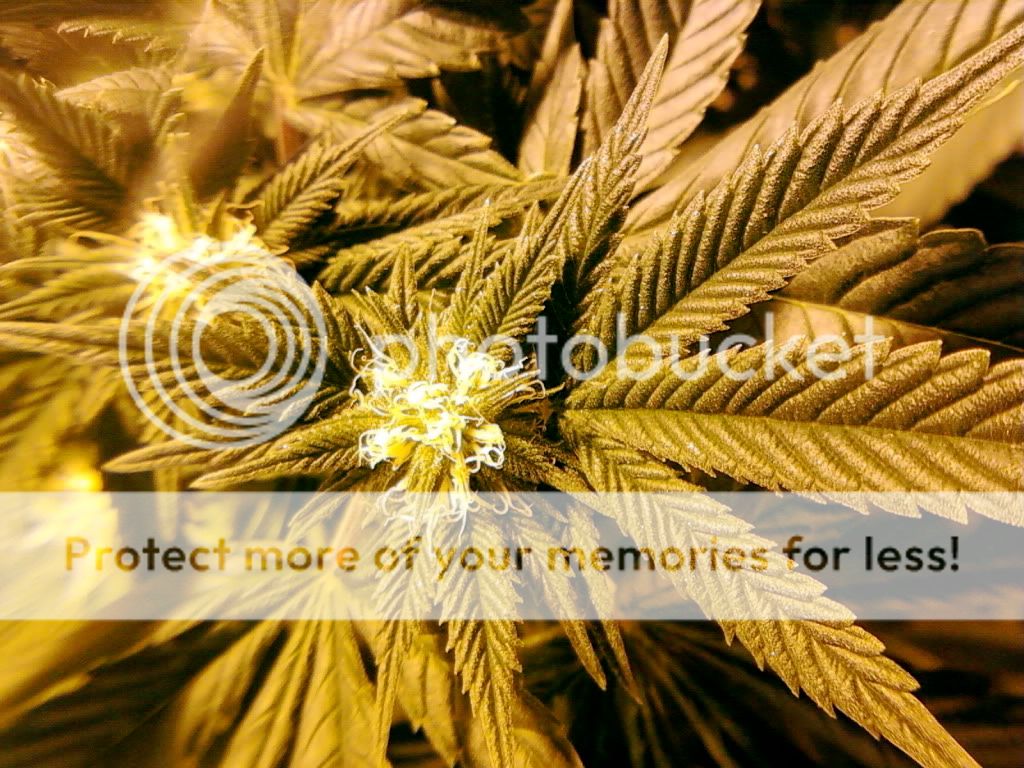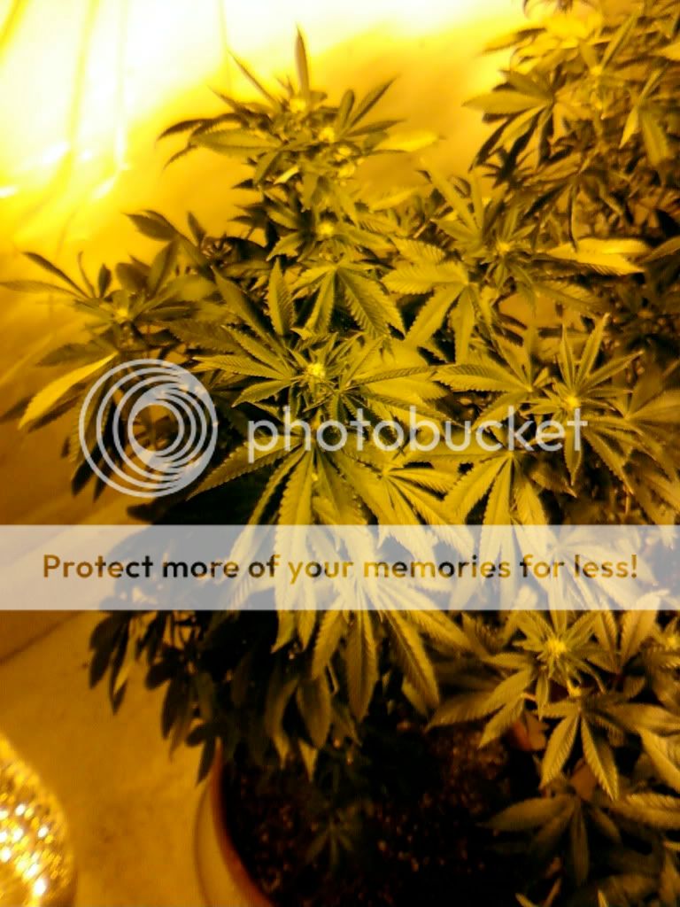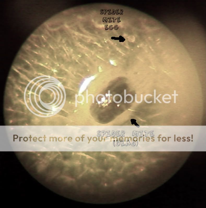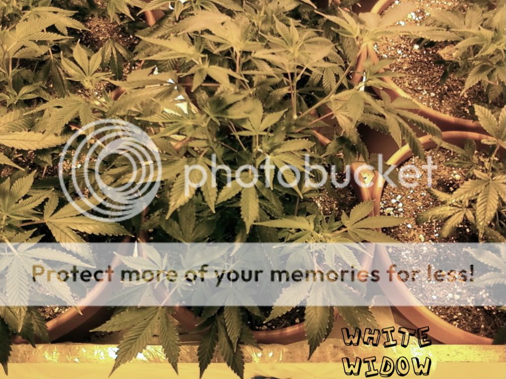 So... it's been a while! And in that time, things have gotten better and worse! We've been topping all of the girls, and they are reacting very well to that! Much denser bushes, with thicker stalks. On the other hand... we have 4 White Widow that are behind. I think it was over watering. The pots were pretty heavy in comparison to the others. So I've been watering them every other day. They have begun to grow steadily. But the worst problem that has plagued our grow is... SPIDER MITES!!! We caught them early and tried multiple methods to take them out. But we had no result! We got the Hot Shot Pest Strips, tried Sevin and another insecticide i can't remember, made a nicotine spray (which included tobacco, garlic and a sliver of soap)... and now, with those little bastards continuing to have a field day on our plants... I'm pulling out, what i've been told is, The Big Guns! We were recommended Mite-Rid. Surprised i hadn't found it myself. But i'm crossing the fingers at this point. What a pain in the ass, spider mites. Well, if all goes well, and it works... it looks like bloom could be only a few days away! OH AND... the nicotine spray damaged our Master Kush. Only the Master Kush, though. Kid of odd. There's a picture showing it, below.
