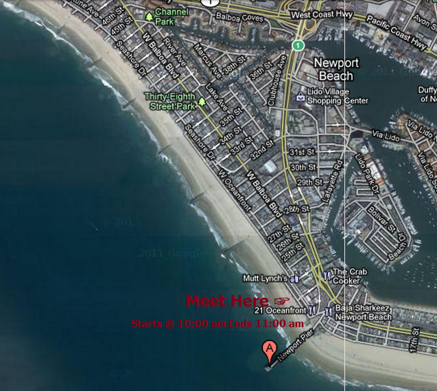Meeting place: Newport Beach at the Pier. . . Down on the beach; look for all of the people in shirts.
