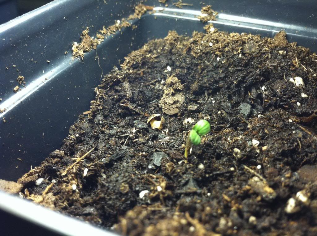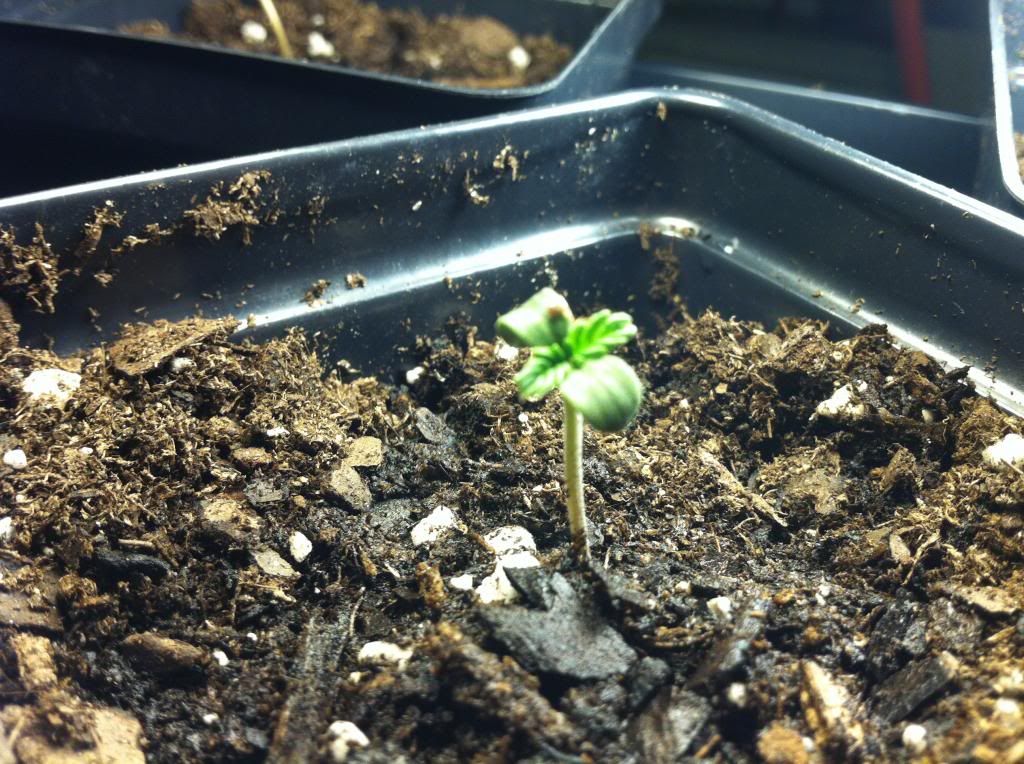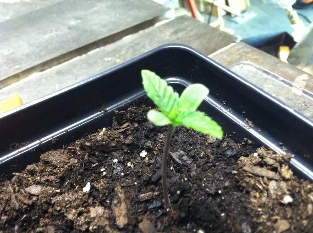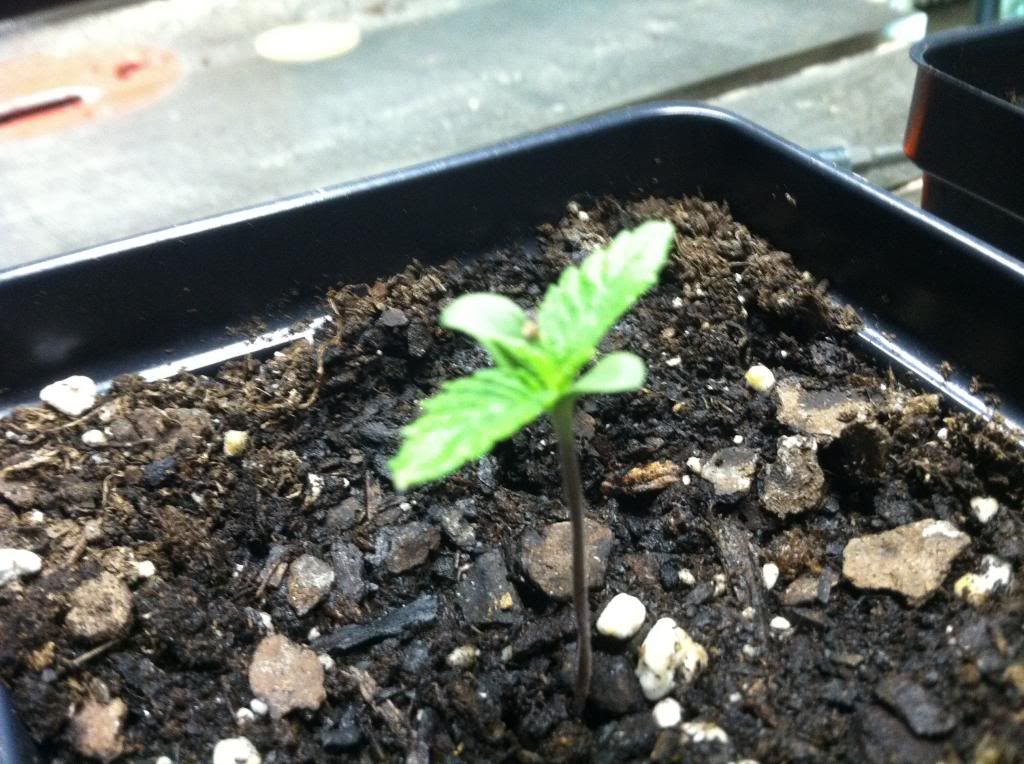 hello all. i have been on here for about a month and have read and read thread after thread before i started. hear is my experience with growing so far 15-20 years ago i tried to grow a few bag seeds and they grew about 3 inches and died. did it again and the same results. now reading all this info on here i think they were root bound in little containers. so now here i go again. i have 10 cheese bomb that i got from gorilla and planted 3 of them 6/22 they are in my basement at 65 deg at 66 humidity with 2 cfls over them.i have them on all the time unless someone has better idea. they are in natural and organic happy frog dirt that has composted forest humus,peat mos, perlite, earth worm castings, bat guano, humic acid, oyster shell and dolomite lime. in 4"x4"x4" containers. I named them A, Band C but my girl is calling them Albert, Einstein, and Mutt. lol so B and C are growing good with what i would call a little stretch so i took A out and planted it deeper almost up to the first round leaves, as per a videio i found around here. will be doing the the same to C. now the mutt B i must have not planted deep enough and upside down it was all messed up so i took it out and planted it best i could. hear are some pics of all of them.