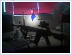and just for shits and giggle heres one of my new Colt M4a1. its my *cough* hunting rifle.....oh, and that is my desk in the backround